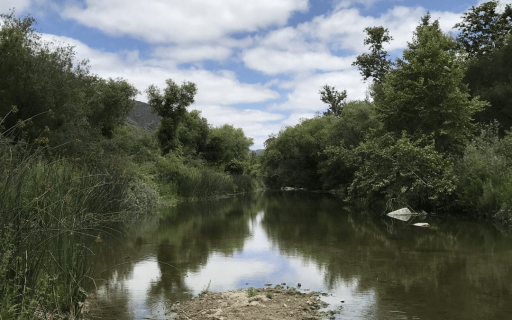 Yes! Most people in the county are not aware of this, but there is one river in San Diego County which has beavers, the Santa Margarita River. The Santa Margarita river begins near Temecula, courses through the hills just north of Fallbrook, and continues down into the Camp Pendleton Marine base. Currently, this is the furthest south that any modern Californian has seen beaver in the state. Where did these beavers come from? We don’t know for sure. Some say it was by reintroduction efforts conducted by the California Fish and Game in the early to mid twentieth century. But however they got there, look at the beautiful habitat these beavers have created in the Santa Margarita River valley near Fallbrook: