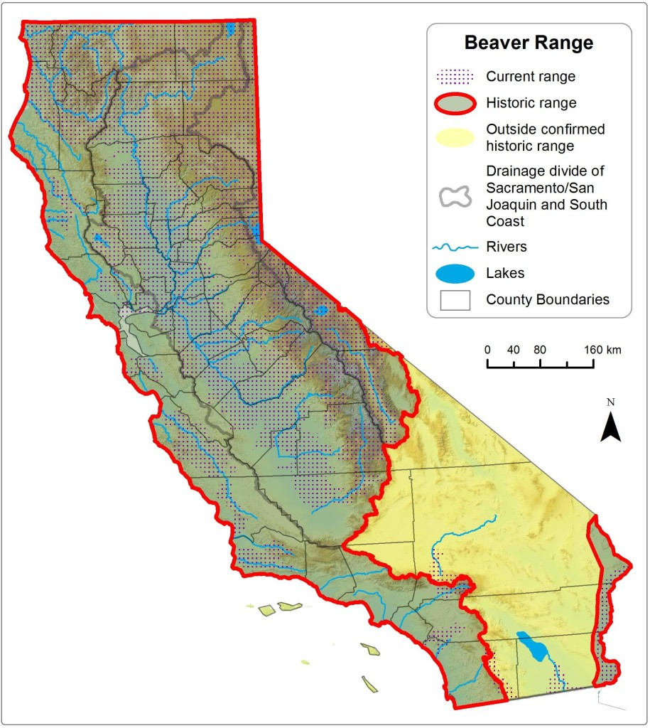 This has been the thinking for almost 100 years. However, new research demonstrates that the historic range of beavers in what is now California once stretched along every coastal watershed from the Oregon border to the Mexican border in the south, including San Diego County!